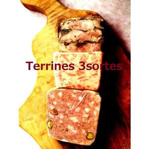 内容量 | ・鶏肉とケッパーの大理石仕立て(約110g) ・サーモンとクリームチーズのテリーヌ(約90g) ・豚肉とピスタチオのテリーヌ(約110g) |